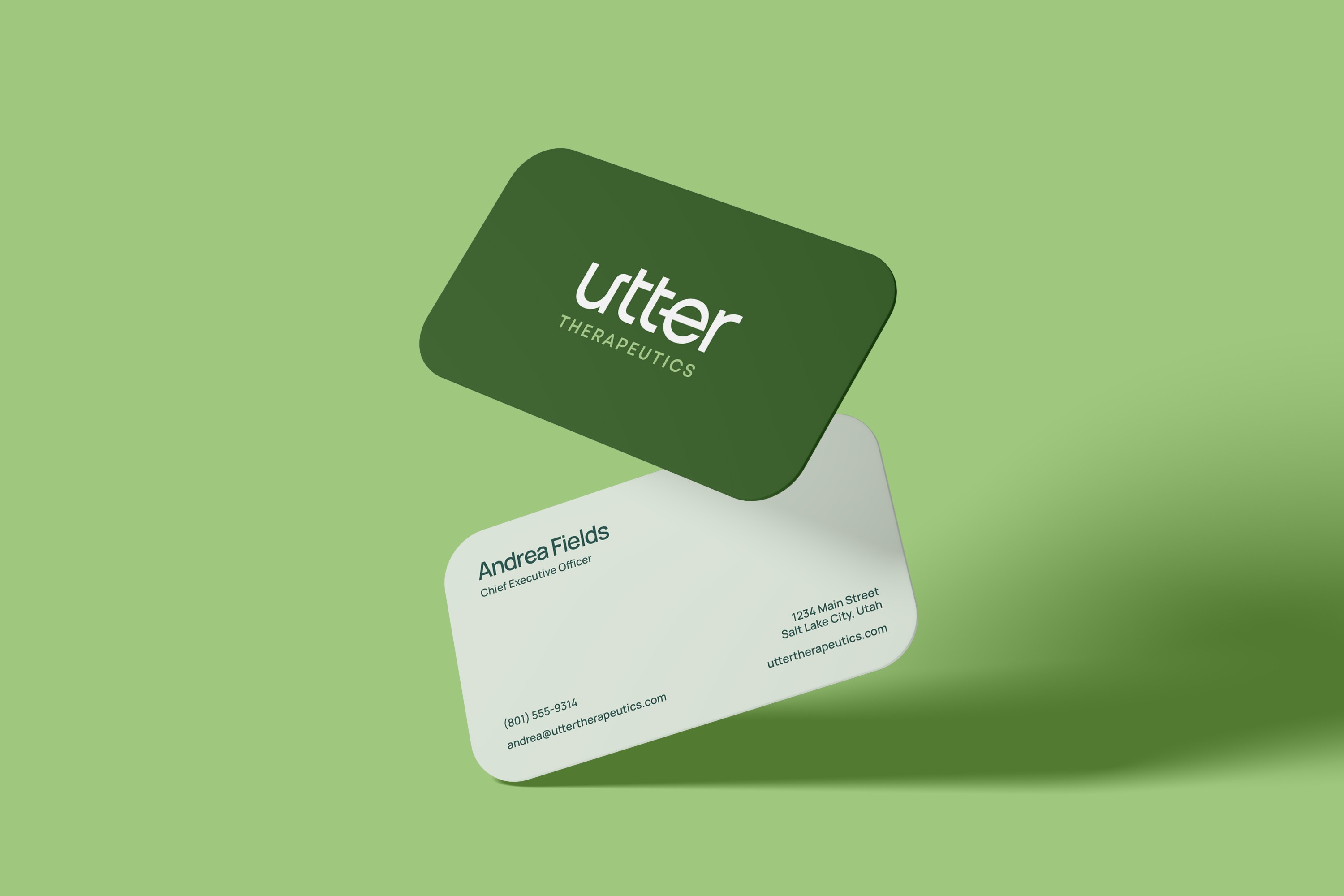 When applied cohesively, the brand elements create a unified and compelling visual identity. Photography, layout, color, and typography combine to tell the story of Utter Therapeutics—revolutionizing care through thoughtful, human-centered design.